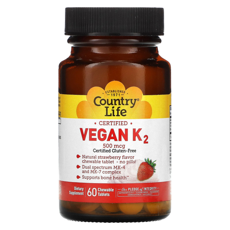 Country Life Витамин K2 в виде веганских таблеток для рассасывания клубника 500 мкг 60 таблеток для рассасывания – отзывы, купить с доставкой по Москве и России по цене выгоднее, чем в аптеке | интернет-магазин himki.fakeoff.ru