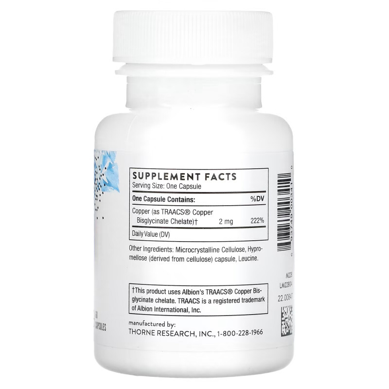 Купить Thorne Research Copper Bisglycinate 60 Veggie Caps – цена 3750 ₽, заказать с доставкой в Химки | Интернет-магазин himki.fakeoff.ru